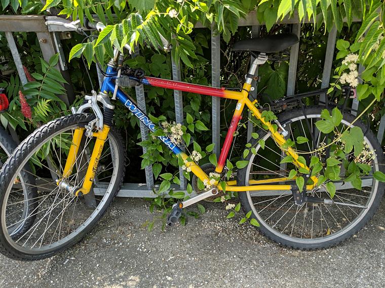 This bike has been here a while - note the vines on it