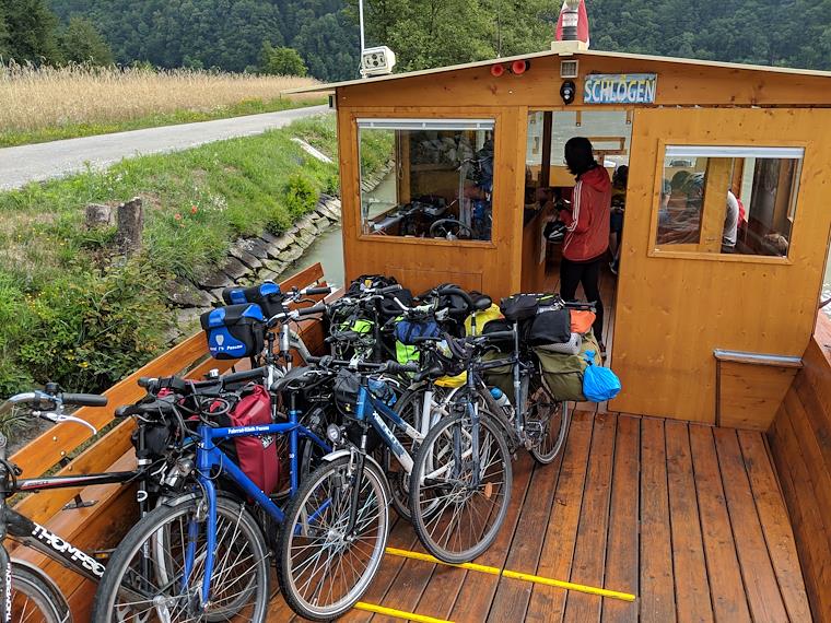 Taking the ferry across the Danube at Schloegen