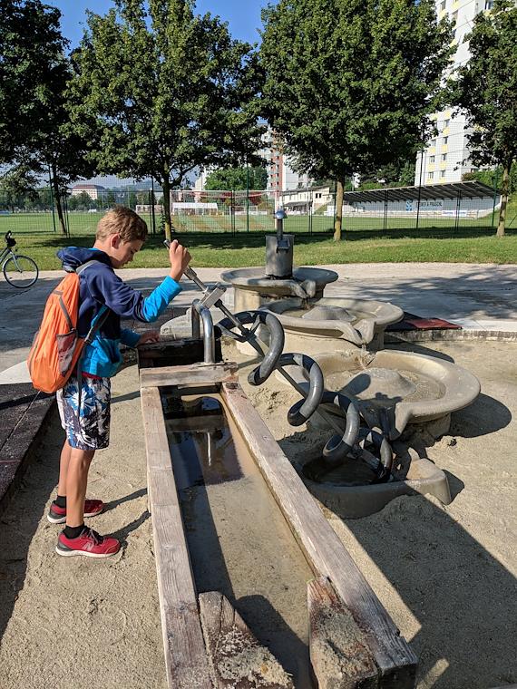 A water-moving device at a local playground - I think it's called an Archimides Screw