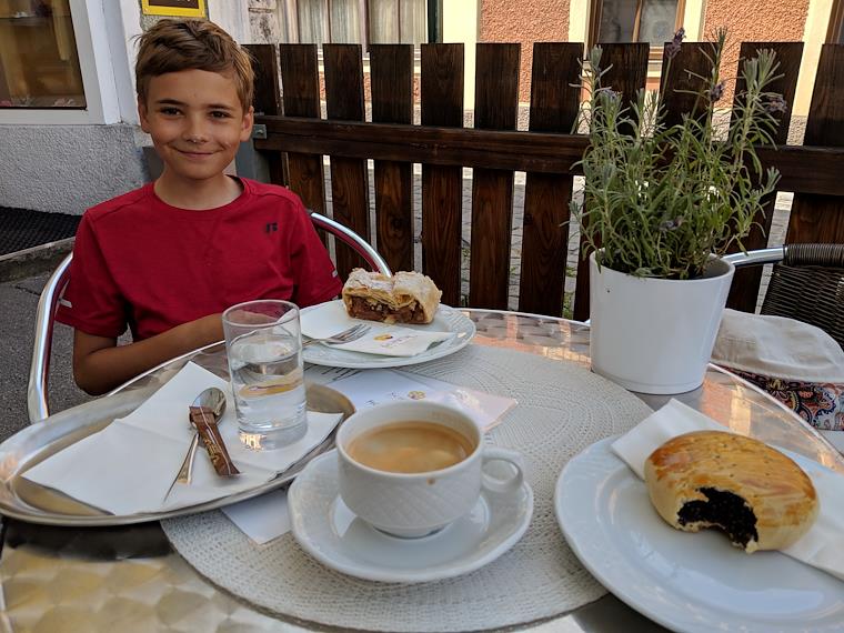 Coffee and cake - I had a poppy-seed pastry I've never had before - stuffed with a huge amount of poppyseed. Loved it!