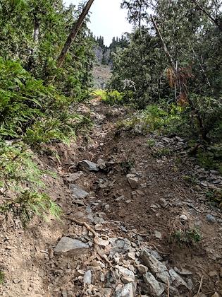 |  | |  | | A very narrow but scary looking landslide that the trail crossed | |