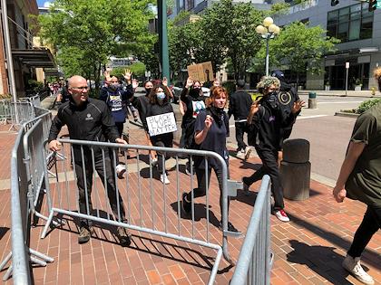 Ilana, close-up with bald eagleFear of rioting and looting - the Walmart at Factoria was closed and the entry blocked with piles of mulch, etc,