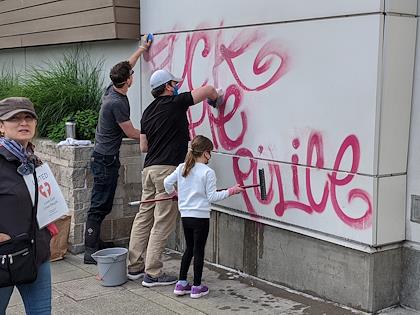 Target was blocked with rows of shopping cartsThe next morning, people were at Bellevue Square, trying to clean up grafitti