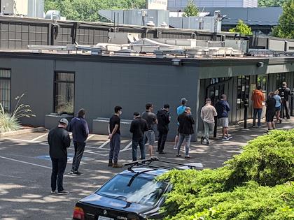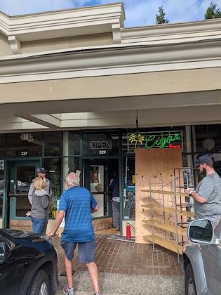 People waiting in line, the next day, at the gun shopBoarding up stores