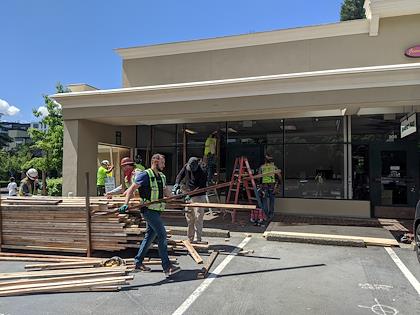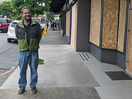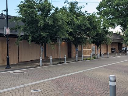 The Costco in Kirkland, barricaded by shopping cartsBoarded up stores in Kirkland