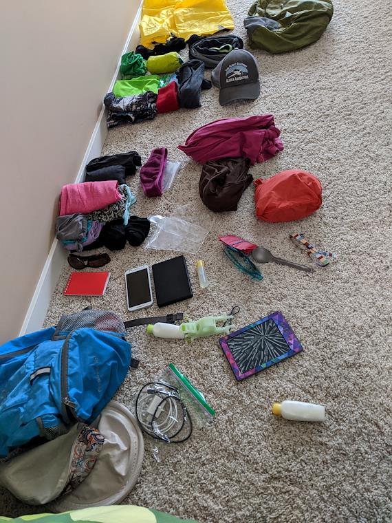 Preparing our gear. I tried to go as light as possible.