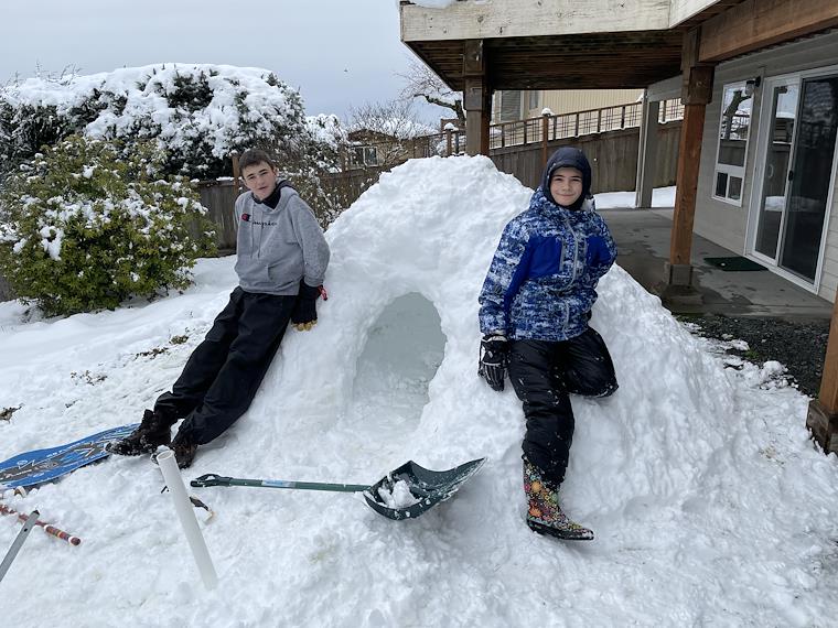 The kids build a snow fort!