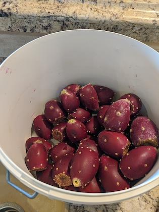I picked and processed a lot of prickley pear fruits just to experiment with them. It's a fair bit of work, and I honestly didn't like the finished product very much. It's beautiful in color, but not very flavorful, and just packed with seeds.Rainbow