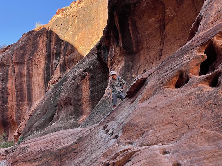 A tricky spot in Cottonwood Canyon. It looks pretty safe in the picture, but it sure didn't from where I was standing...