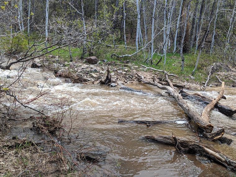 The creek we crossed earlier in the day with no problem had grown tremendously!