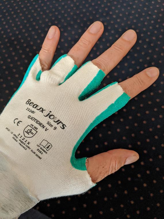 My biking gloves - cut-off garden gloves