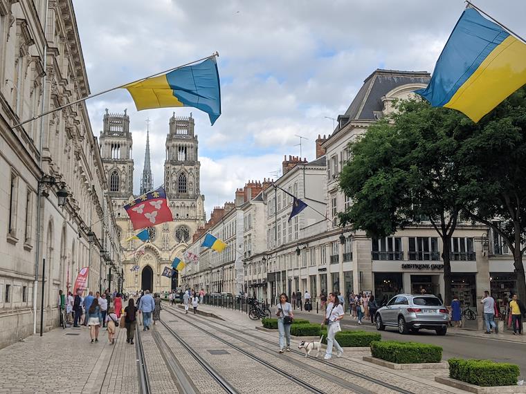 The main avenue in Orleans. Note all the Ukrainian flags.