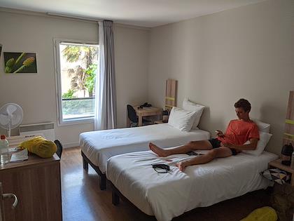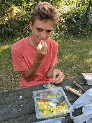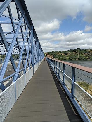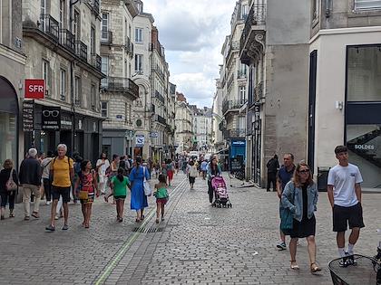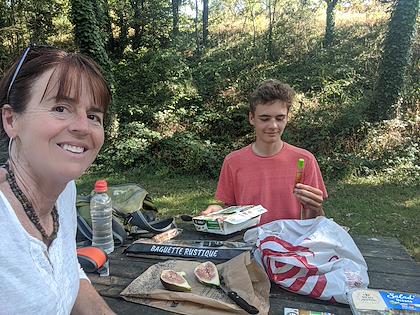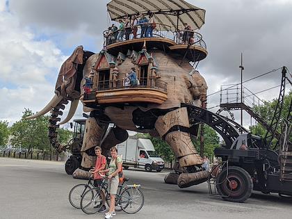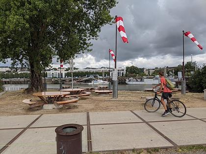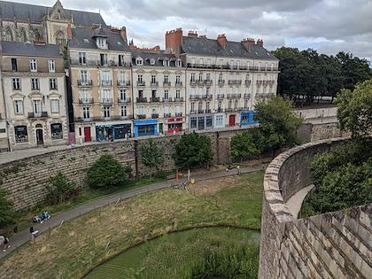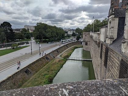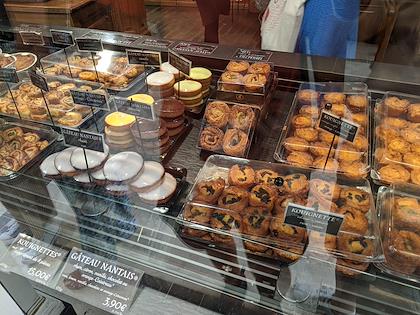 July 10, 2023 - Saint Florent sur Loire to Oudon Instead of trying to get to Nantes in one day, I'm taking things easier and just doing 25k today. We've had quite a few days of about 50k, and that gets old after a while. Nice breakfast at this bed and breakfast, no baguettes but nice sliced bread, cheese. The hostess and her husband were also full of advice about the bike path. Apparently he is a big biker and has been all around France, and done the same route as the tour de France bikers do. I took some pictures of a few pages of the biking guide book, to help in planning. We had a pleasant short ride today, lots of stops for plums, which are ripe and tasty. Oudon castle was where we went to take up some time until tonight's bed and breakfast is available. It's annoying that they mostly have a check-in time of around 4:00, though the past couple nights we were lucky and they allowed us in at around 2. The castle was fine, medieval. We're getting to the point where we definitely won't visit this kind of site if it's out of our way, because we've seen a lot of castles. Going up the steps is actually kind of painful. You'd think the biking would make your thighs tougher, which it must, but still, going up steps is more painful than it normally is. There's no open restaurants nearby, since today is Monday, and that's a day that many restaurants are closed. So, we went to the local grocery (thank goodness there is one) and got some salads, some bread and butter, and some fruit. There was a convenient picnic table nearby that we took advantage of. I found out that Montargis was hit really badly by the rioting, arson, and looting, just days after we left. A pharmacy was burned down, just one street north of the hotel we were in. Crazy.  | | Markers for different flood levels over the years |  | | Lunch - we bought (from the host of last night's bed and breakfast) some boutique jarred fish risotto from a local producer. A good break from bread and cheese. |  | | The tower in Oudon |  | | The hanging (moveable) mills, next to our bed and breakfast - Le Moulin pendu - Champtoceaux |  | | The hostess of the bed and breakfast makes her own pastries |  | | Dinner |  | | Peter's salad had a breadstick shaped like a fork | July 11, 2023 - Oudon To Nantes Our last real day of biking, from one town to the next. We may do another city bike day in Nantes, but this is the end of our daily travels. From here on will be in Nantes, then we'll take the train to Paris, and then fly home. It's hard to believe that we're close to the end of our trip, and this is the last biking day, except for day trips. At the beginning, it felt like we had so much time, even that I might have made the trip too long. This morning we had breakfast at the bed and breakfast, I asked our hostess how her twin baby boys had slept that night, and it wasn't that good, one of them was up a lot, with a cold and teething pains. After getting all packed and ready to go, we were checking out with the husband, whose family is from Cameroon. A very engaging guy, we had a good talk with him, at least 45 minutes, he talked about the very high taxes in France, how he'd love to go to the United States, his impression of the political system in the United States. He said, using his hands to indicate high, medium, and low, "There's God, there's the United States, and there's France". We spoke almost exclusively in French, but he says he and his wife have a goal this year of learning speak English better. They better start practicing!  | | Flood levels |  | | Getting close to Nantes |  | | This looks like a painting to me |  | | Probably our last picnic along the bike path |  | | ... and the grafitti starts. It's because we are close to Nantes |  | | Another Bellevue, east of Nantes | It was a short 30K day on our bikes, and we took a lot of breaks. Easy biking, almost exclusively level. As we got closer to Nantes, we started seeing graffiti all over, also there was what looked like a gypsy settlement right outside of town. It feels strange to be in a large city again, this is by far the largest one yet, since Paris. We started seeing signs of some of the recent riots, lots of broken and boarded up windows, mainly. Also there were broken windows at the Carrefour that we got some groceries at. We went to the castle, very close to our hotel (which has a little kitchenette), and walked around the walls, which are completely free to walk around on. There was also a museum in the castle, but neither of us felt like it. Then we went to the train station, so Peter could play the public piano that was there. He had to wait a long time because there was already someone there playing, finally he got up the nerve to go up to him and ask to play, and it wasn't a problem. This area is definitely more like Paris and the suburbs, in that there are many, many more Arabs and blacks here, than there were in the past couple weeks of our bike ride. There's also a lot of people that you really only see in cities, the chic urban types. Often very well dressed. I'm getting ideas of clothes that I want to wear. I'm certainly getting tired of the items I've been wearing for the past 3 weeks! I went to the tourist office to ask about the trains to Paris. And I have to say it was the least friendly tourist office that we've ever been to in France. Must have something to do with it being a large city. The friendliest one was the one in Montargis. But all of them have been pretty friendly, except for this one.  | | Views from the castle | July 12, 2023 - A day in Nantes At the breakfast buffet this morning we sat with the two German men, who arrived at the same time we did yesterday and were also touring the Loire, camping. I had a really good conversation with them, we started out in English, but then switched to how I used to speak with my parents (they spoke German, I spoke English). It worked very well. They started their tour at the city of Nevers, and actually did make a 