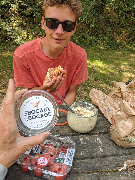 Lunch - we bought (from the host of last night's bed and breakfast) some boutique jarred fish risotto from a local producer. A good break from bread and cheese.
