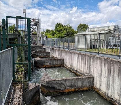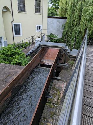 |  | |  | | A fish ladder at the place we picked up the boat again - the rest of the day we traveled on the boat. | |