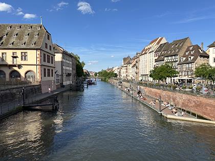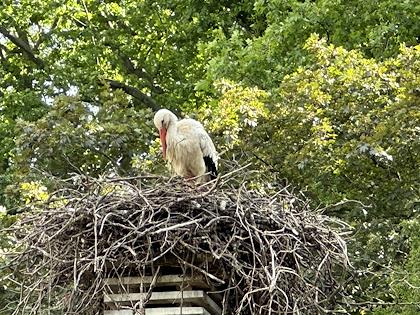 | Strasboug to Germersheim We're on the boat now, and I had a really good night's sleep. The mattress in this cabin is really nice and soft, very comfortable. Our first days ride was very easy, maybe 25k. We stopped at the Russian Orthodox church and were hoping to go in, but they were having services. We were putting the bikes away, a lady came up to me and asked what we were doing, and told me we weren't dressed properly (I had my bike shorts on). So, no go there. Took a little bike around the Orangerie park, nice, tons and tons of joggers. Then a very long, straight buggy stretch, still tons and tons of joggers on a pretty narrow path. We took the route that was a little bit longer, through Wantzenau. Very pretty, parts of it were very close to a road, I tried to get us routed on a road that was less trafficed, but was not successful. Anyway, a fairly short ride, and now this afternoon we're taking the boat up to Speyer, I believe, and spending the night there. The room is nice, very efficient, comfortable. Unfortunately a weird smell comes from the shower - I wonder if we could just put a piece of plastic or something over the drain, and fix it like that. Large windows that can open, it's very bright inside with the curtains open. So far there's two couples we've talked to, Lisa and Joe (?) from Seattle (!) and Lisa and Peka from Finland. Both very friendly. In the afternoon we were on board, the boat went up to Germersheim. The water is extremely high, there's visible flooding in a lot of places. It was a pretty relaxing afternoon. We did a treasure hunt organized by the ship, and actually won, by collecting a lot of numbers (following clues) and then opening up a treasure chest in the captains cockpit area. There was a bottle of wine and 2 little figurines, we told him we'd leave it for the next guests. But then Josef (I think that was his name) came after us with the little figurines, so we took them. Another excitement of the on-board afternoon was that there was a big fire on the side of the river. I couldn't find out any news about it, but from looking at the map, there was a paper factory right where the fire was occuring, so that's probably what was burning. We played some cards together (rat a tat cat, and egyptian rat screw, Peter's favorites ) and then Dinner last night was not sufficient since I'm continuing to do zero carb/carnivore, luckily I had some cheese and eggs on board. I will need to speak to someone, see if I can have them make a few changes to what they give me. We walked around town in Germersheim after dinner. The thing that struck me by far the most was - wow, where are the Germans? Literally out of everyone that we encountered, and were able to figure out nationality because they were talking, or the way they dressed - at the least 95% of them were foreigners. I only heard one couple talking that were clearly native German speaking. Wow, what a change - it's like an invasion, without the war! We went to a kebab place, because dinner for me was so skimpy, and Eric got a sandwich, I got a box, with just meat. Ate most of it as well, even though it was pretty full, that's how skimpy my dinner was (without the soup, without the dessert, and with just a tiny bit of the dinner - the meat roll. I've been talking quite a bit with Josef, the ... hotel manager, I think is his title? He's very friendly, and is also from the province of Ober Oesterreich. He's very chatty and helpful. |  | |  | | First day of biking, this is in the nearby Parc de l'Orangerie | | Always lots of storks |