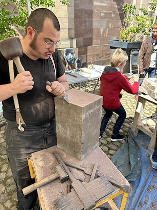 |  | |  | | And across from that was a big archeology fair, they also had some medieval crafts | | This stonecutter used the same tools as the original artisans used on the cathedral |