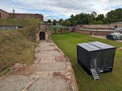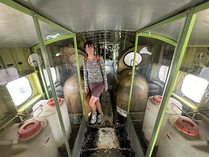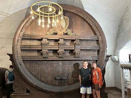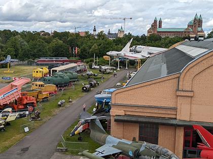 | Germersheim to Speyer About to go to breakfast, and have a good meal (plenty of meat, cheese, butter and egg), and also fill up my lunch box, which is the standard for lunch. Yesterday morning they also put full-size Mars bars next to our plates. Luckily I bought a little tupperware at the Deux Euro shop that came with attached knife/fork, which turns out is really good for this type of lunch. Unfortunately the weather is not good - solid drizzle, if not actual rain, is forecast for the whole day. We'll see how bad it is for cycling. Hopefully not too bad. Okay, actually everything turned out great in terms of weather, just the tiniest bit of drizzle. We ended up doing an easy bike ride (around 22k) to Speyer. The bike trail stayed very rural, we didn't see the river but were often in very bushy areas that were kind of buggy. But overall quite nice. Before hitting Speyer, we went to the Technick Museum in Speyer, which is basically a museum for all kinds of transport, motorcycles, cars, old trucks, and most impressive were the airplanes and submarines, that you could actually go into. The Lufthansa 747 was WAY up in the sky, up multiple flights of stairs. I didn't really want to spend that long on it, because it was tilted quite a bit, and it felt weird to walk in it. We found out later that you could actually go out on one of the wings! I don't know how we missed it, but we did. The submarine was very cool, I'm always very impressed with the way they managed to make the tiny little spaces work as living quarters. Speyer itself turns out to be a beautiful old town with a cathedral from 1061, romanesque style. I was wondering what part was new, and what old (because parts of it were quite new looking), and went to the tourist office to ask that question. There was a man hanging around there, talking to the tourism office worker behind the desk, but I finally got to ask my question. And it turns out that the first man was a complete expert on the cathedral, he gave a long presentation on his laptop, complete with pictures, on the history of the cathedral. Quite interesting. He had apparently recently retired from a very intense career at BASF, working often from 4 am to midnight, and needs to have a very involving post-retirement job. So he's throwing himself 100% into being a tour guide. What else...Kenny and I walked around, getting some kebab for Kenny - the food on the boat isn't really enough for him. I went to a grocery (REWE) and bought a few things as well, just to have something in the room to snack on. Dinner was actually pretty decent and I got plenty - it was a Thai style buffet. |  | |  | | The next day, we biked through the old fortress on our way down river. | |