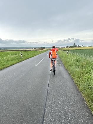 | Worms - Mainz The final day of boat biking. The first part of the day was on the boat (unless you wanted to do a 60k day), then the boat was halted in Nierstein (sp) for most people to get out and bike to Mainz. A bit of drizzle at the beginning, and then things cleared up. A pretty decent ride, then we got into town and navigated to the boat.. There's a huge carnival happening, lots of food trucks, lots of rides, and vendors. They also had that thing happening that we saw years ago in Brussels - the police blocked off access to the pedestrian area with a huge dump truck so that nobody could drive in and run people over. We were able to get some cash at an ATM, the rate didn't seem too bad. Then some time in the lounge, playing cards with Peter and Eric. (mostly rat-a-tat cat). Last night on the boat, tomorrow morning we have to be out by 9, but can leave our things here until noon. Then Eric and Kenny will be headed to London, and I'll be here with Peter. |  | |  | | On the way to Mainz | | Arriving in Mainz |
