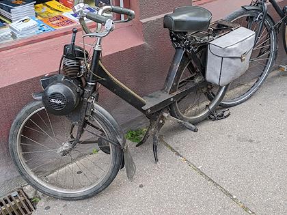 |  | |  | | Next to our AirBnB was an art show. It wasn't impressive | | This bike outside the art show was cool though - an old bike fitted with a motor. I saw a total of 3 like this while biking the Rhine, one was in a museum. |