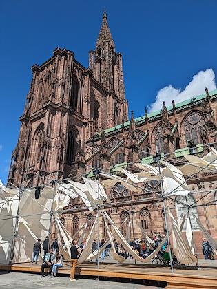 | Last day in Strasbourg This morning I had to figure out what we were going to do, with all our bags, between 11 (check out time) and 4 pm (check in to the boat). I did a lot of research into luggage storage options. But the AirBnB was flexible with the check out so we ended up being able to leave at 1.30, then spent a little time in a very interesting park close to where we pick up the boat (Parc de la Citadelle). It was previously an old fort, you could still see about one sixth of the old wall. We did manage to also see the cathderal, there's a long line where they do a completely useless bag check if you have a little daypack, but it moves fast. Inside a wedding was happening, and after we were in there about 15 minutes, they started ushering everyone out, and emptying the church. Then we checked out the hands on display at the archeology museum just across the square. There was a very interesting stone-cutting demonstration where we were also able try out the tools ourselves. Also there was a demonstration of primitive tools like stone and early metal hatchets and knives. And we were able to use the bow-drill for fire making (actually made it smoke a bit, with some work!) |  | |  | | Outside the cathedral they had an interesting display with a bunch of canvas sails and hammocks. | |
