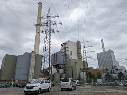 |  | |  | | A big industrial area in Mannheim | | Many of the low-lying areas next to the Rhine had been flooded, and many plants had gray dried mud on them |