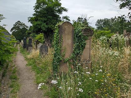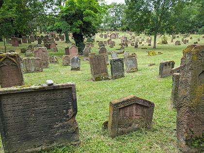 |  | |  | | Parts of the cemetary were very wild looking. They had a crew of people there, mowing and clearing. | | Most of the tombstones were in Hebrew, these were some of the few that weren't |