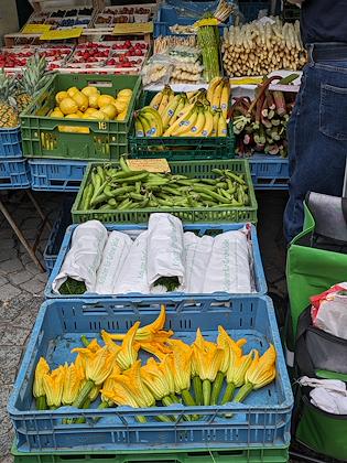 |  | |  | | Apparently every summer weekend in Mainz, there's a big festival. Tons of people around, lots of booths and stands | | Food markets |