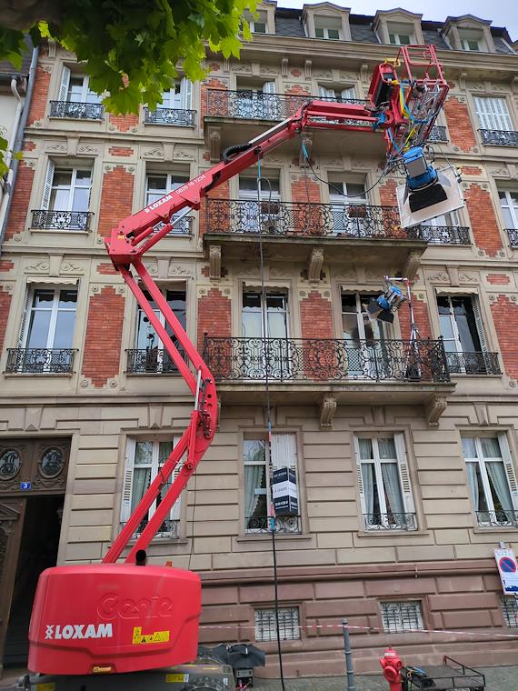 A movie was being filmed in town, they were using this crane to film the balcony.