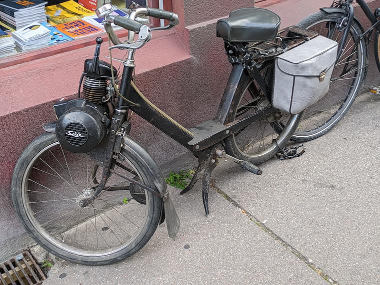 This bike outside the art show was cool though - an old bike fitted with a motor. I saw a total of 3 like this while biking the Rhine, one was in a museum.