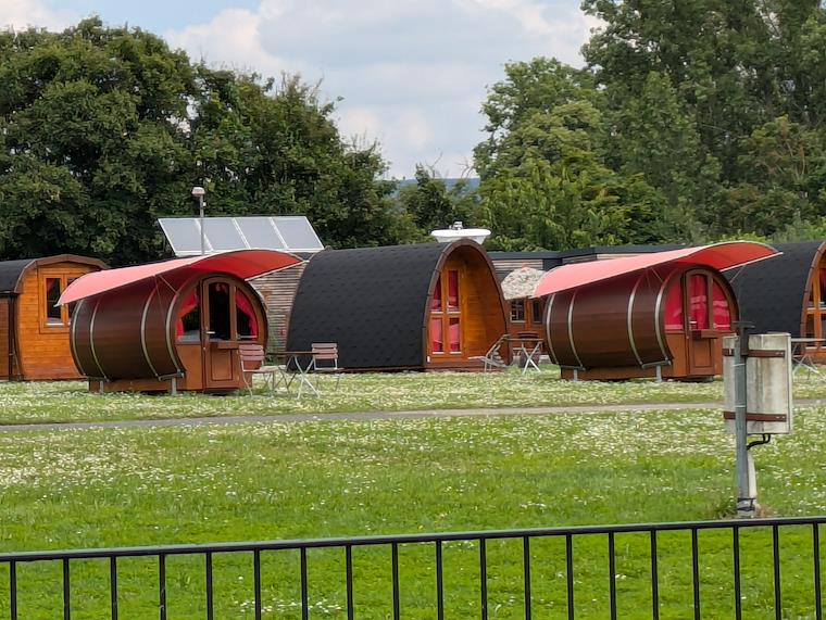 A campground with a bunch of those interesting barrel homes. I guess they get quite hot though, because they attach roofs now.