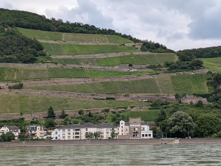 A lot of steep hillsides looked like this - slanted roads next to the vineyards, so they could be cultivated.