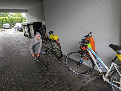 |  | |  | | I bought a small towel in Emmerich for the youth hostel, which didn't provide towels. It dried easily while biking | | The playground had a small pump |