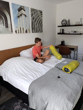 |  | |  | | I thought this was for a weird varient of ping-pong, but it's for a sport called foot volleyball | | Peter in the attic of our Warm Showers host family in Maurick | | | | | | | | | | | | | | | | | | | | | | | | | | |