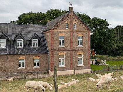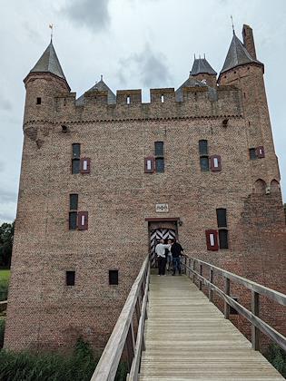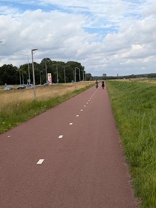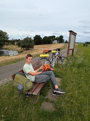 | Monday, July 8th, 2024 - from Arnhem to Maurik Breakfast at the StayOkay hostel, this time I was able to chat with a lady. She's dutch, from not too far away but comes here for a little break from routine. The bike ride was fine. We're not really following the track anymore, there's SO many bike paths that we're just kind of winging it, with Google maps and OSMAnd only sometimes. Stopped at Castle Doorwerth, and wandered around it, had a little snack and enjoyed ourselves, even though it was closed Mondays! So we couldn't go inside, but I don't necessarily think that was a bad thing, wandering around the outside was good enough. The attachment for Peter's drybag pulled out - the part that I sewed up held, but the other side tore out. So we attached it with just a cord, and hope it holds. Nothing all that exciting to note about the bike ride, except lots and lots of fruit trees! We bought a basket of plums from a roadside stand, and saw loads and loads of fruit stands and orchards. We got to our Warm Showers host around 3.15, they're a family (Sanne, Elian, boys Kobe and I forgot younger one's name). Very friendly and welcoming indeed, we sat with them at their outside table, had some cherries (Sanne and Kobe are picking cherries at an orchard nearby), and chatted for a long time before Peter and I went out for a little walk around town. Elian started his own company, he manufactures bike parts. Mostly related to specialty bikes such as the cargo transport bikes. He just came back from a convention in Frankfurt, EuroBike or something. He started the company maybe 10 years ago, didn't make money for 5 years, started it in his parents back yard. He does a lot with CAD programs, he also bought a CNC machine for the parts. Sanne is super sweet, she made dinner (roast potatoes with cheese, some vegan meatballs, green beans, and a salad of home-grown radishes and cucumbers). They have a dog and three chickens, that apparently lay eggs sometimes. Conversation at the table filled with legos with Sanne and Kobe (the 13 year old) - Kobe is really eager to talk and discuss, he complains about his English but it's not too bad. He goes to a dual language school, is very interested in history and the European Union. AND - Sanne made arrangements with the farmer she picks cherries for, we will go pick with him tomorrow, with Kobe, the older son! It'll be interesting. I wonder how/if we'll get paid? I've never been paid for farm work before. |  | |  | | Headed to Maurick | |