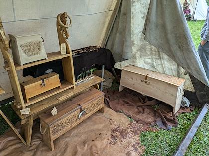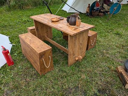 |  | |  | | Handmade Viking chests | | A table/bench set. It looks like the benches are nesting. |