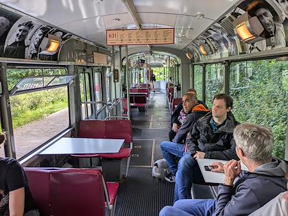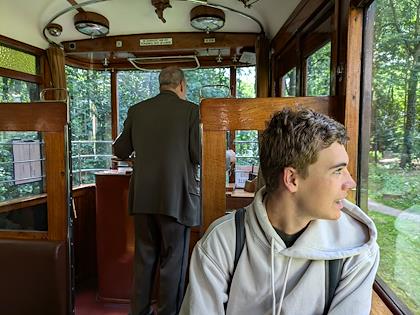 | Spending the day in Arnhem Decent breakfast buffet here at the hostel, but people were pretty quiet, a lot of singles eating breakfast with us. I had a LOT of hard boiled eggs with butter, also some of the cold cuts and hot milk. Then, to the open air musuem that's just about 5 minutes bike ride away. This is absolutely my favorite type of museum. They're transplanted dozens and dozens of homes and farm buildings - even a full dairy factory - from their original location to here, with furnishings and decor and tools, and usually some good explanations. There was a tram you could get on and ride about, it made a circuit around the whole museum grounds (which were huge). I took loads of pictures, some very interesting ones of buildings, furnishings, etc. Peter had a small meal in the restaurant, which didn't have a lot of options. I skipped it. On the way home, we stopped at the Co-op grocery, which - turns out - does NOT accept credit cards, so I tried paying with my debit card, and had no luck. I hope that doesn't mean the debit card doesn't work, because I need to get some cash. What else about the museum...it's really all in the pictures, very interesting and multi-functional furniture, people were very friendly and open, would initiate conversation. The more I interact with the Dutch, the more I think ... what is wrong with the Germans? They were really totally different, very set apart and almost never (never?) in my experience, initiated a greeting. Completely different across the border. Had a long talk with a Canadian guy (I heard him speaking English with his kids). He's on a sabbatical year here in Arnhem, his 2 kids are at an international school here. He studies animal science (nutrition or something?). He said they're talking about slaughtering 30% of the livestock here, because ??? Something about the soil? It sounded like a disaster, he didn't go that far and didn't seem to express much of an opinion on it. He said there's MULTIPLE vegan political parties - their main political position is basically - do not eat meat. One thing that really confused me is there little cabinet beds - they were so short! The first few I saw, I thought - oh, these are the children's beds. But then I never saw any longer ones! Then I went into one of the houses where there was someone there, and I asked him. He said - they slept sitting up! Very strange, but I guess it's true. Dutch sounds so much like English! So many times, when I first heard someone speaking, it sounded like they were speaking English, then they say a few more words and you realize...no. I often understood what they were saying, mostly. German helps a tremendous amount. I can kind of, halfway, read things. |  | |  | | On our way to the Open Air Museum. Some very ritzy homes in the neighborhood above our youth hostel. | |