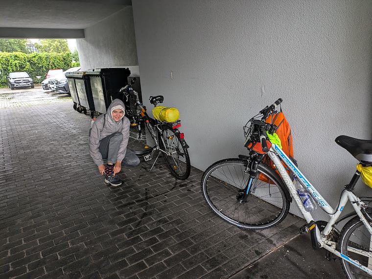 Leaving Duisberg, headed to Xanten. Taking shelter from a rainstorm