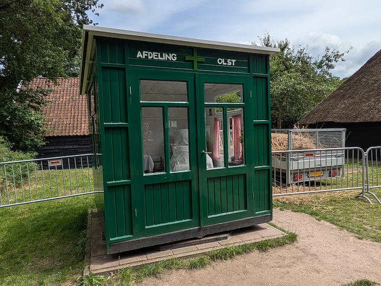 This little hut was designed to be moved with the sun, and contained a bed for a tubercular patient. Sun was one of the therapies that was used.