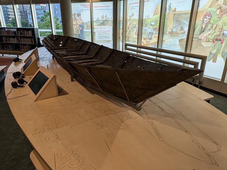 This is apparently an old boat that was found at the original location of the first dike of old Rotterdam