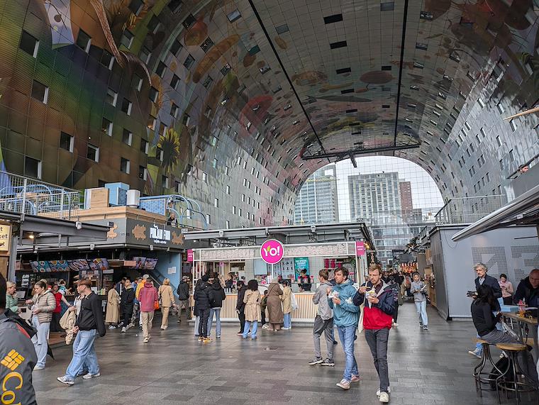 Markthal, a huge indoor market with food stalls and restaurants. The outside is all apartments.