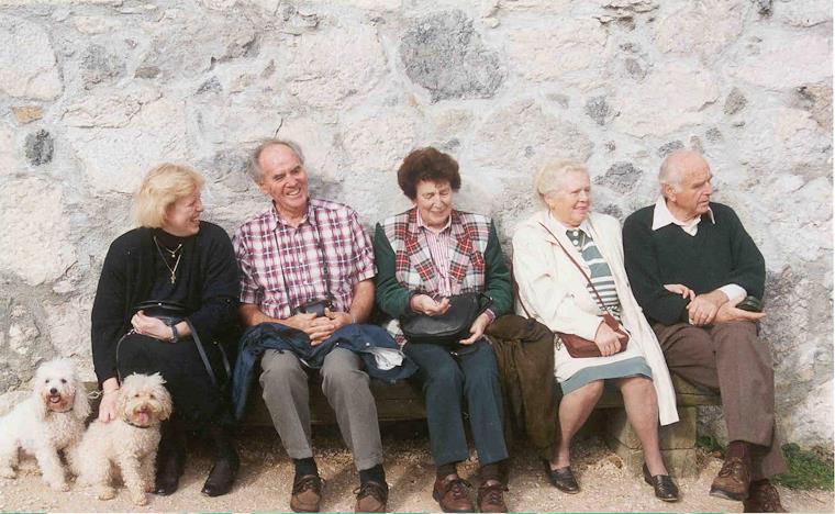 1996 October. Werfen, near Salzburg Austria. From left cousin Claudia, dad, aunt Elfriede, aunt Lisl, uncle Erich