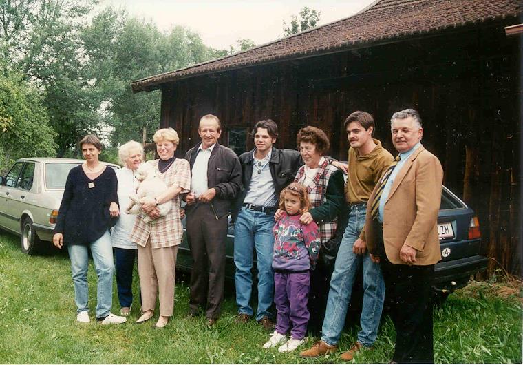 1995 June. From the left cousins's wife Uli, aunt Lisl, cousin Claudia, uncle Werner, second cousin Marcus, niece Natasha, aunt Elfriede, brother Alex, and uncle Carli