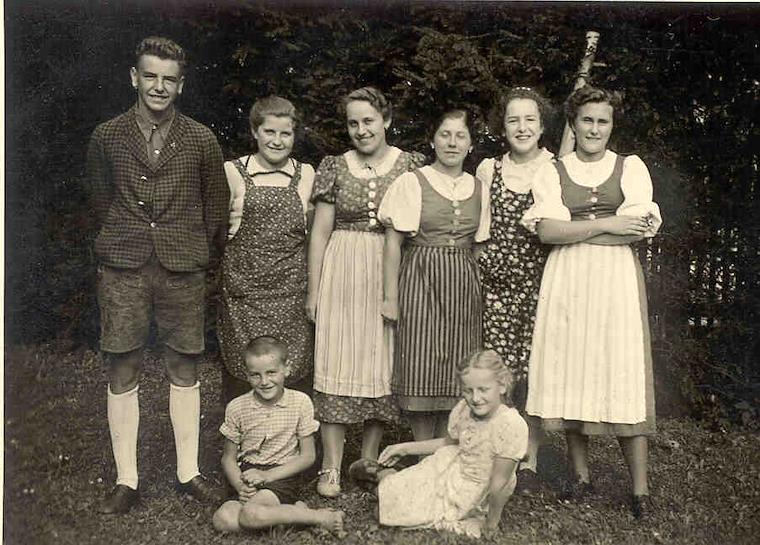 1937? My father (bottom left) with friends and family. Uncle Eric top left, Aunt Elfriede second from right.