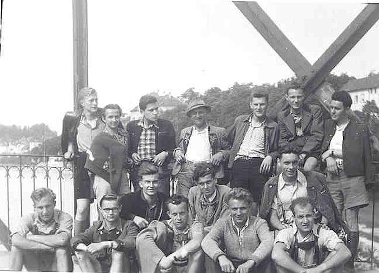 1952 Class excursion. My father is on the far right. A bridge in Steyr