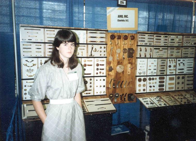 1985? Helping my dad with his handle and knob importing business at a furniture show.