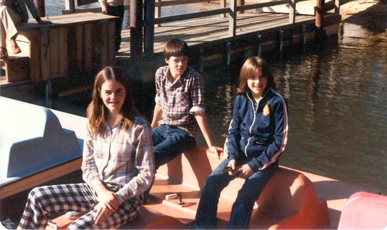 1979? With my friend Heidi and brother Tom. Goofily dressed in double plaids, with braces.
