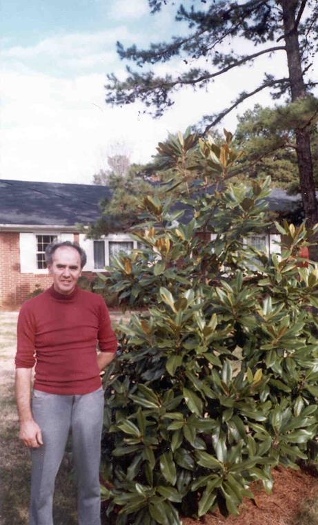 1985? My dad in Charlotte. This magnolia tree is huge now.