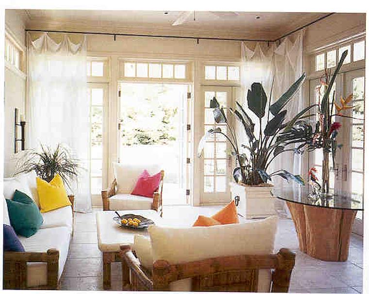 Sunny room, open to the outdoors.