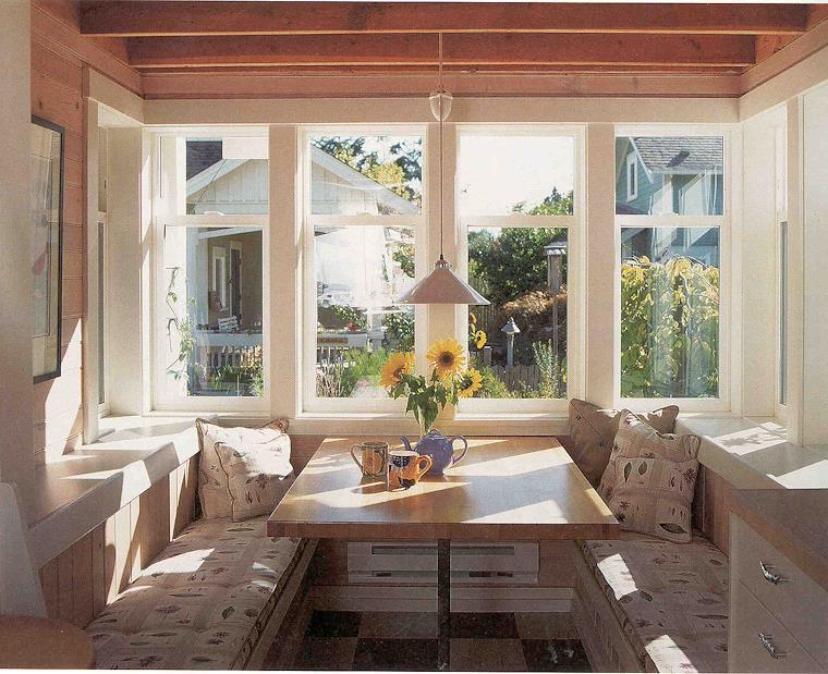 This is my favorite eating nook picture. I really like the windows on three sides, and the broad windowsills. The seats don't look that comfortable, though.